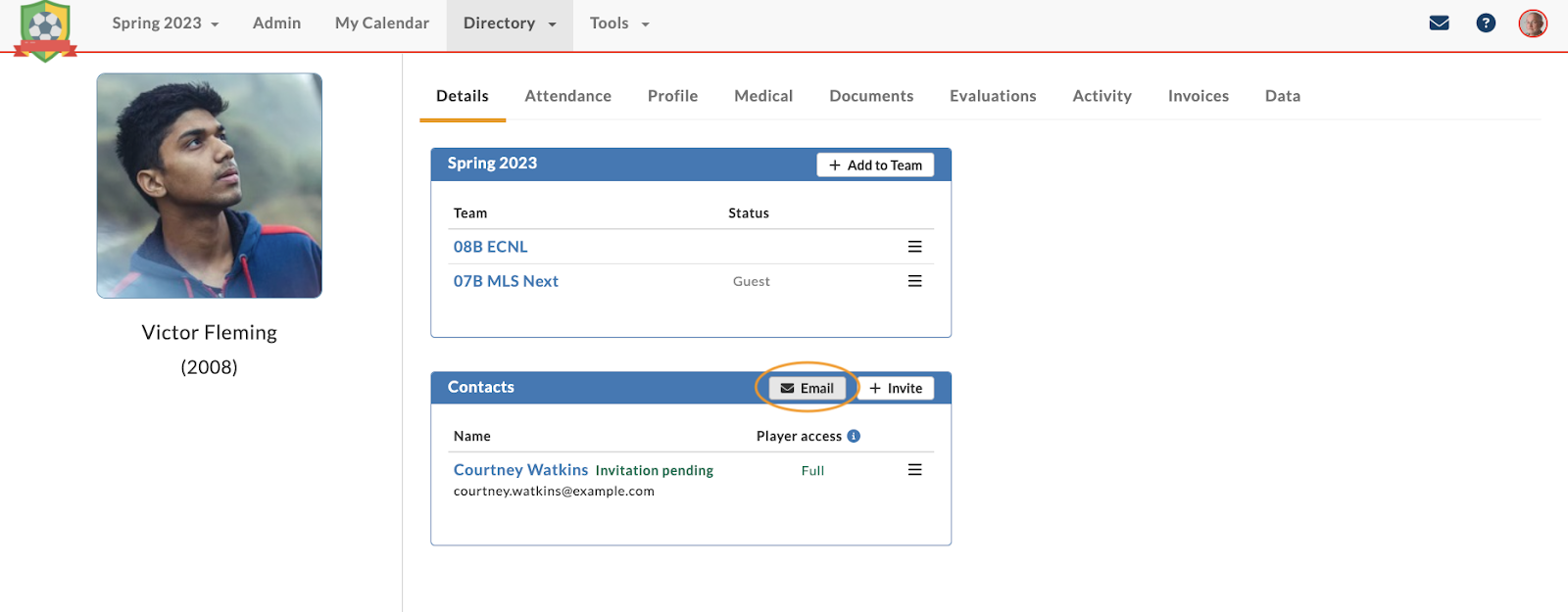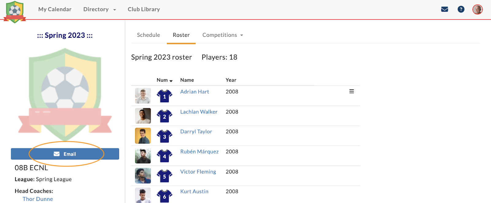 2. Click on the roster (or the Staff if needing to message a specific team staff)